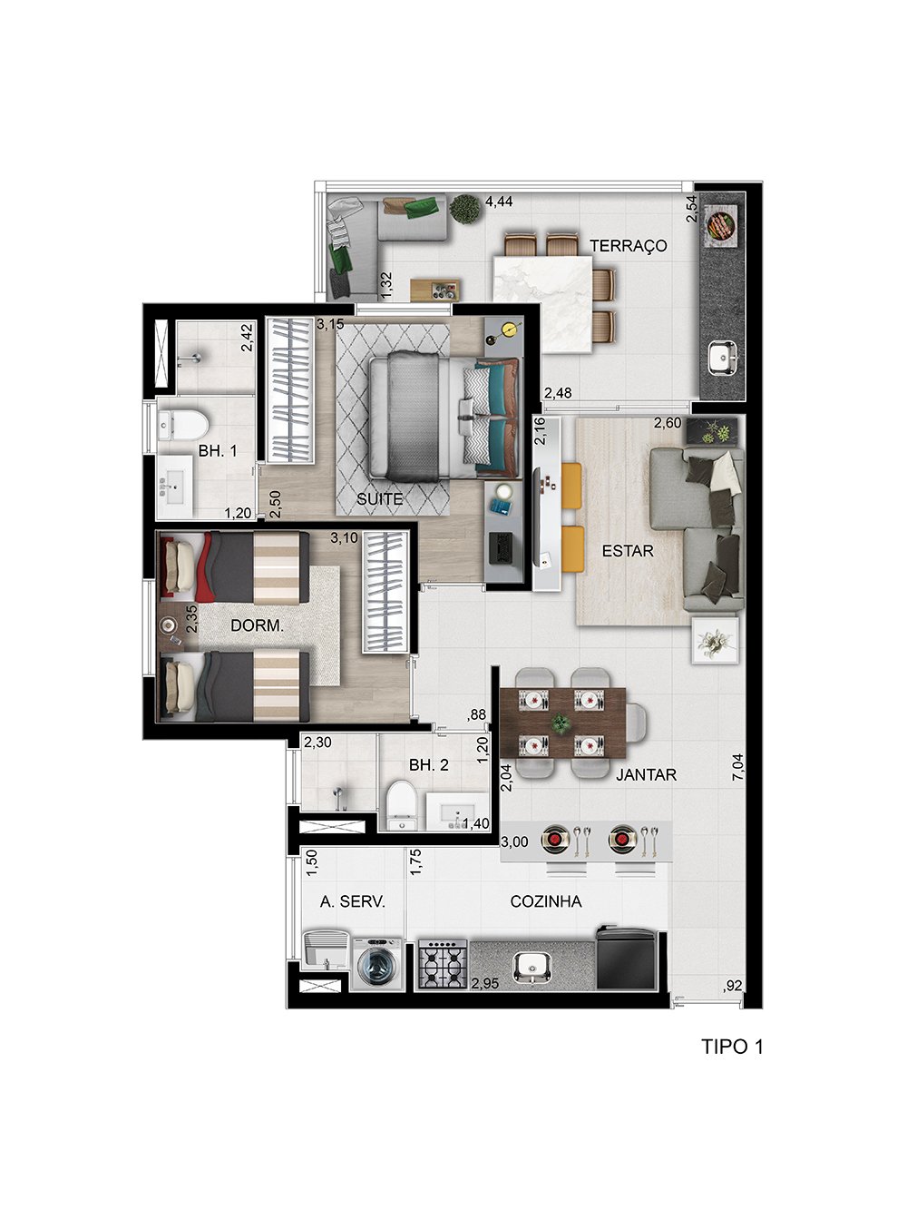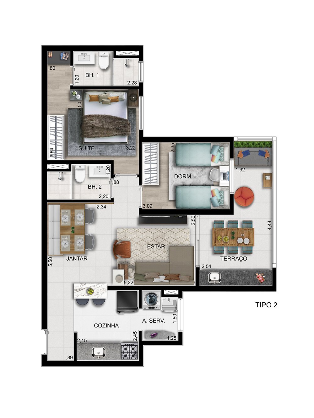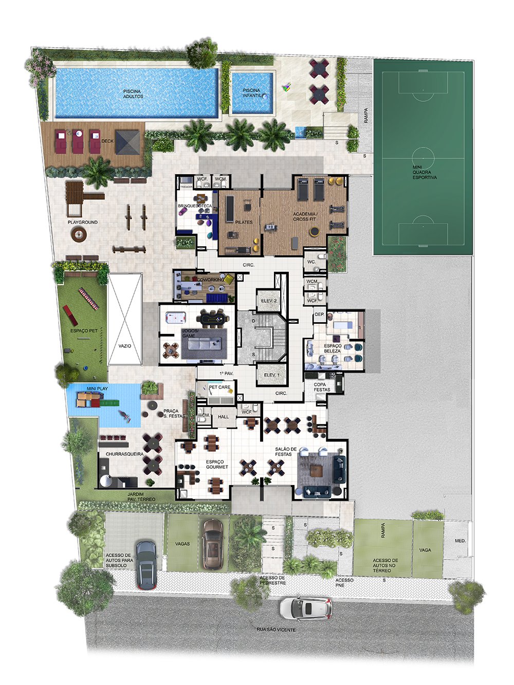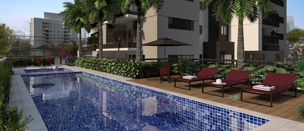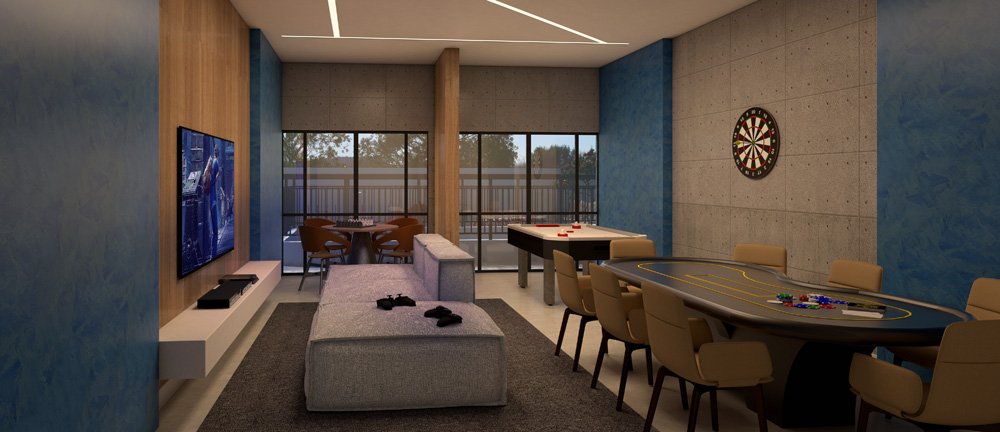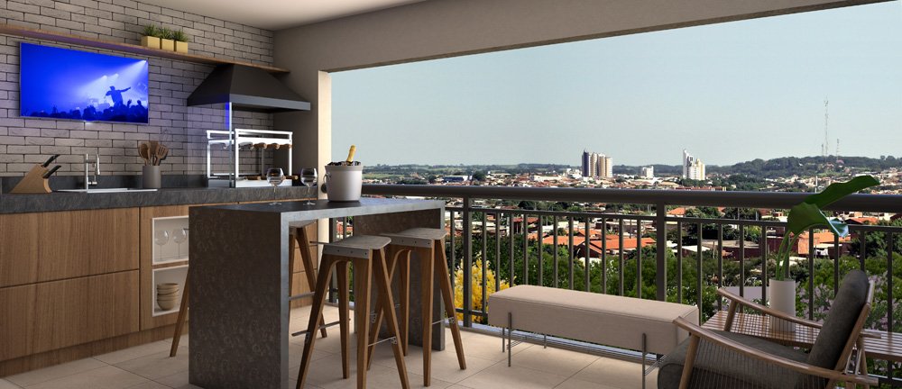Lounge, Piscina, Playground, Portaria 24 Horas, Quadra Poliesportiva, Sacada com Churrasqueira, Salão de Festas, Salão de Jogos, Varanda com