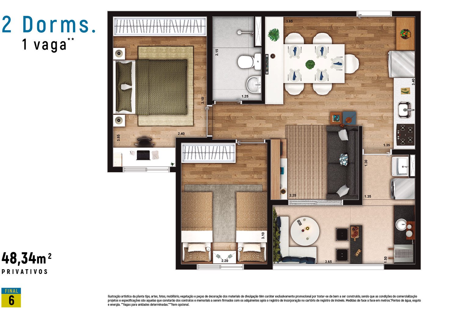 Lounge, Piscina, Playground, Portaria 24 Horas, Quadra Poliesportiva, Sacada com Churrasqueira, Salão de Festas, Salão de Jogos, Varanda com
