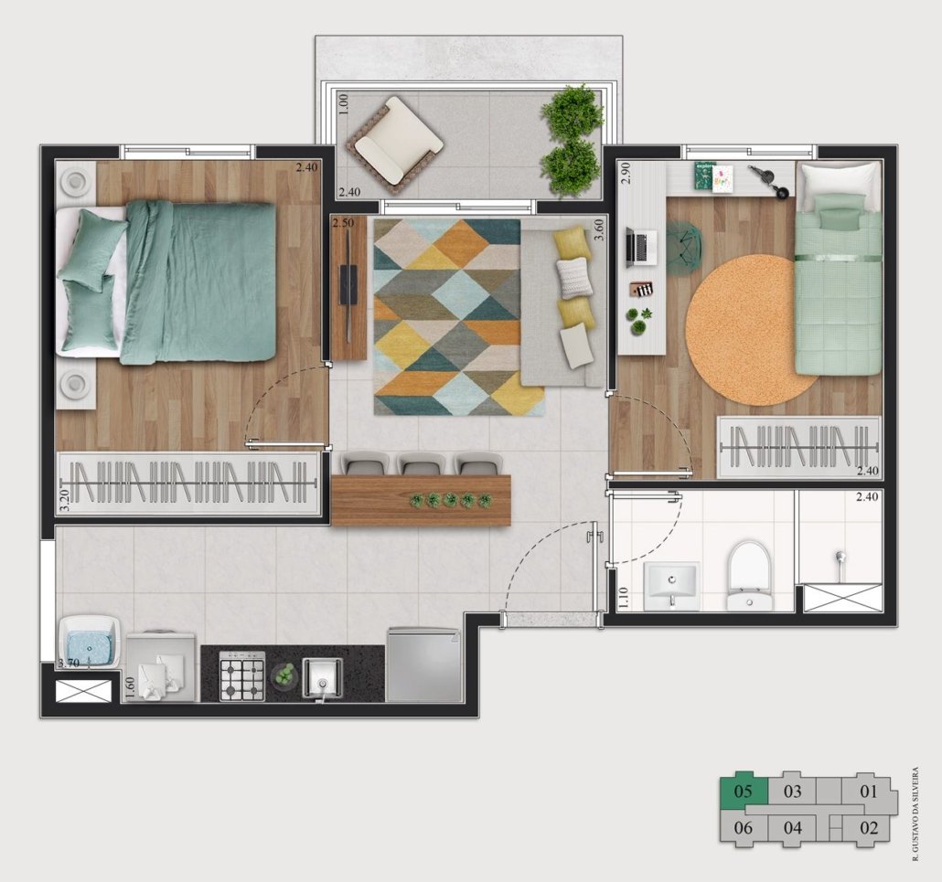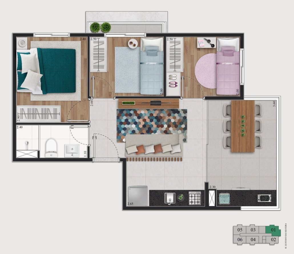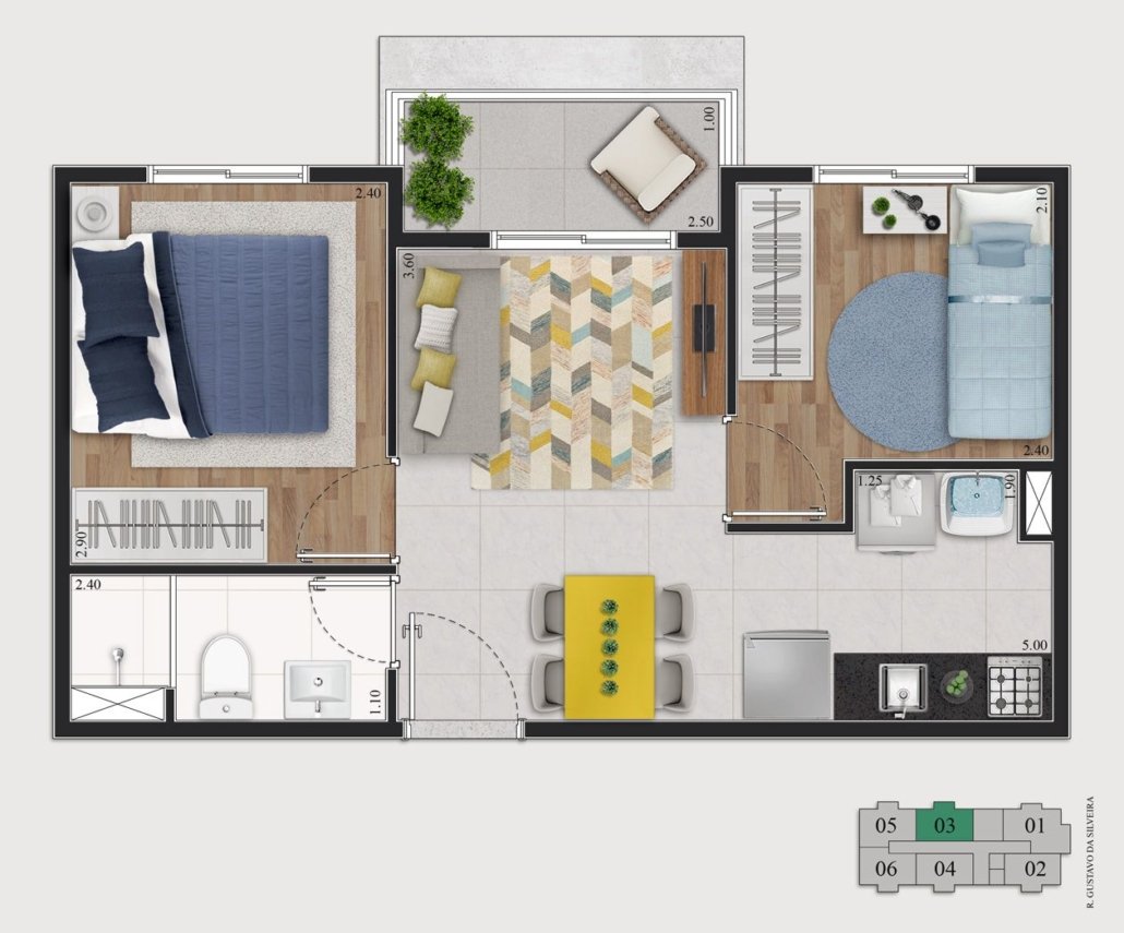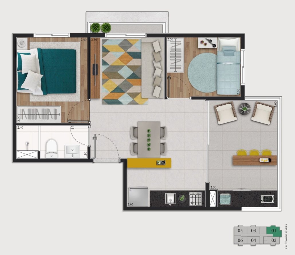 Aptos de 02 Dormitórios,Banheiro com ou sem Terraço Gourmet de: 36,5m², 39,50m² e 48m².